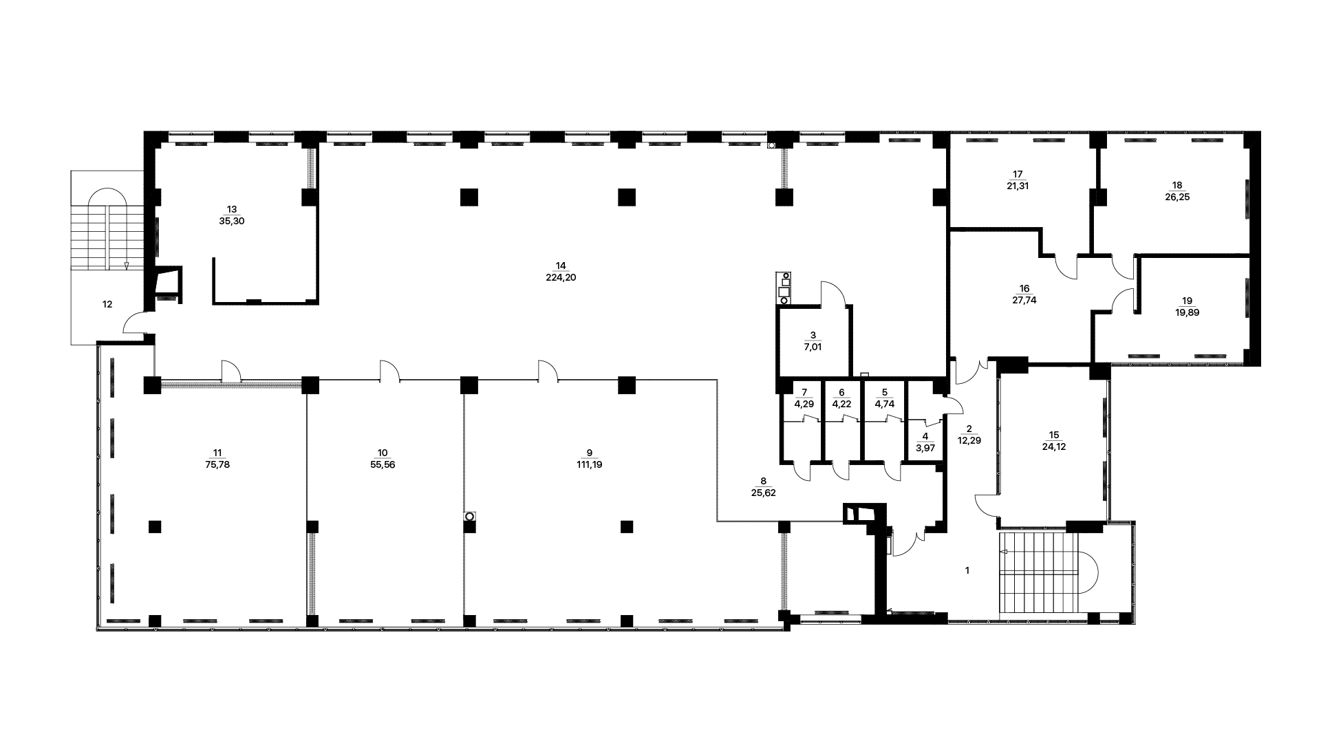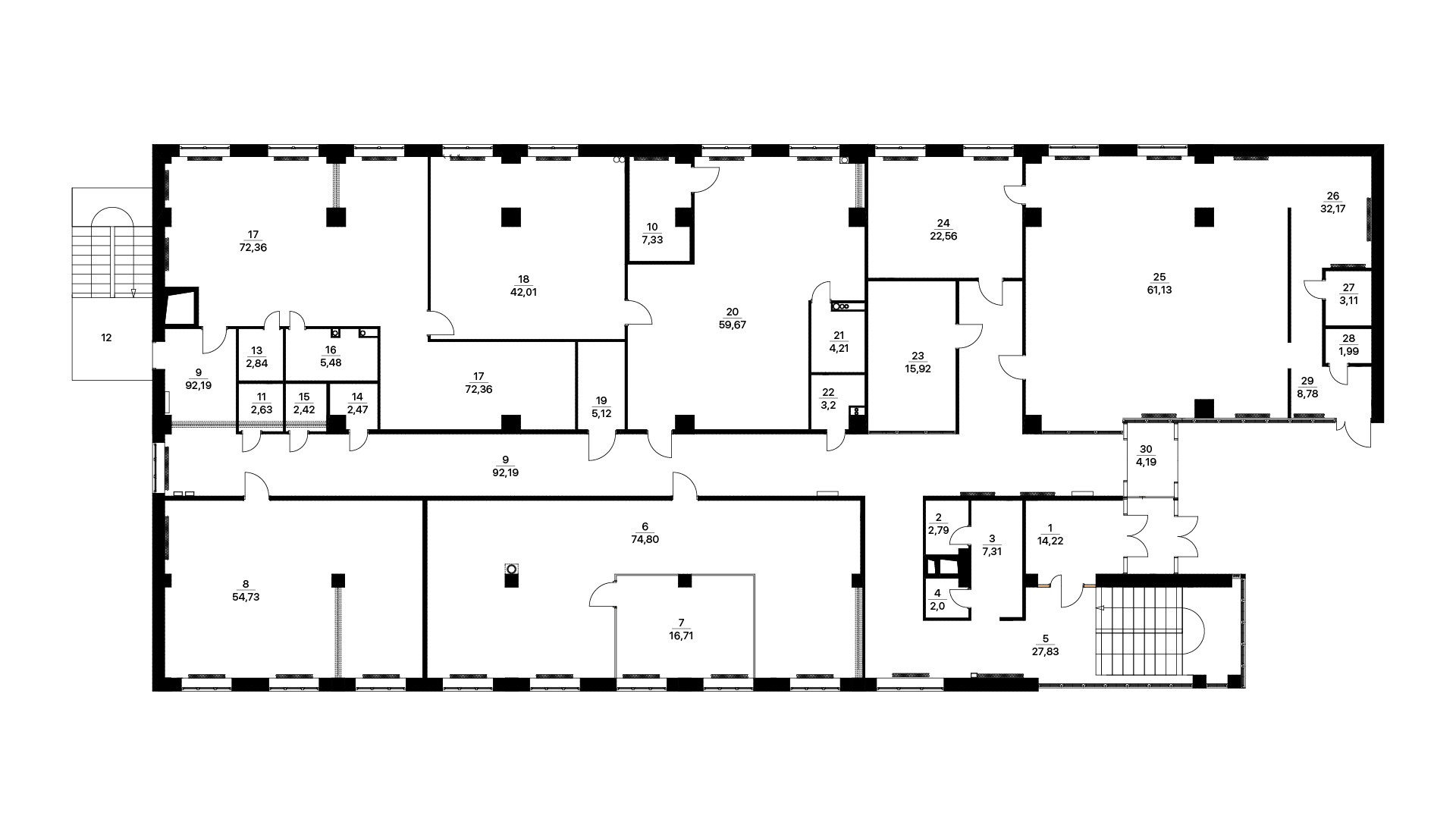 Все инженерные системы в наличии: СКУД, СКС, кондиционирование, приточно-вытяжная вентиляция с рекуперацией, охранно-пожарная сигнализация, видеонаблюдение, оптоволокно. Выделенная мощность на административное здание 102,71 кВт. |